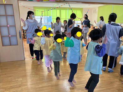お神輿を担いだ後は、園に戻ってみんなで「ドラえもん音頭」「ひよこ音頭」を踊って、秋祭りを締めくくりました。
