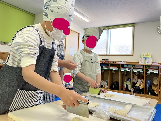 薄くなった生地は、最後にぞう組が切っていきます。細くなるように慎重に切っていきます。なかなか生地が切れず「難しい💦」という声も聞こえてきましたが、徐々にコツをつかみ、上手に切ることが出来ました!