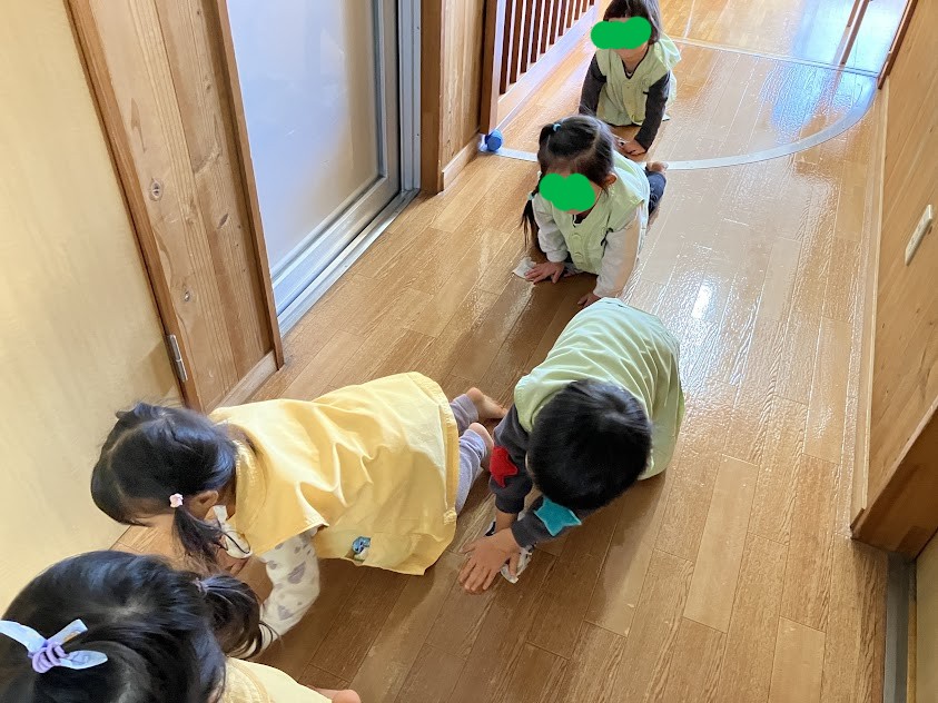 最後は、雑巾がけ!力を込めてバランスを崩さないように頑張りました💕